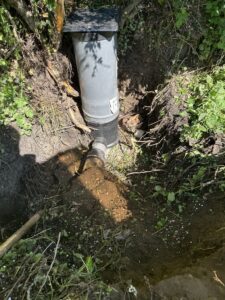La terre, les racines et la végétation ont été retirées pour dégager complètement la zone et permettre un contrôle fiable du réseau. C’est une étape classique mais indispensable pour assurer un écoulement sain et éviter les dysfonctionnements (stagnation, fuite, affaissement…).